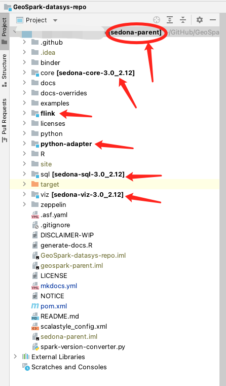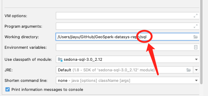 Append the submodule folder to Working Directory. For example, sedona/sql.