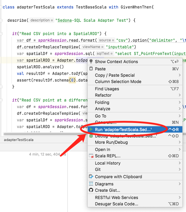 For example, to run the test on ST_Contains function located in sql/test_predicate.py, use: pipenv run pytest tests/sql/test_predicate.py::TestPredicate::test_st_contains